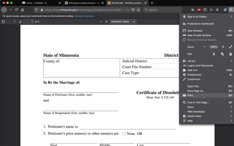 You can print exactly what you see in your web browser to make sure you have it for later. You can also print forms from the court's website or PDF documents with information you'd like to keep for later.