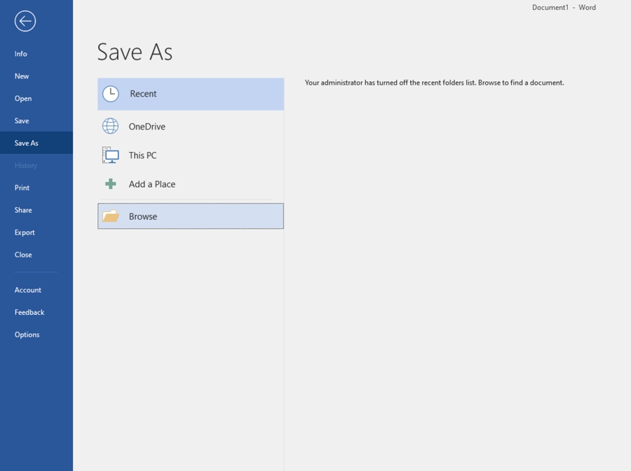 This will bring up the document dialogue box. Select browse to choose the destination of your file, then choose "Documents".