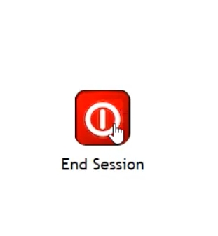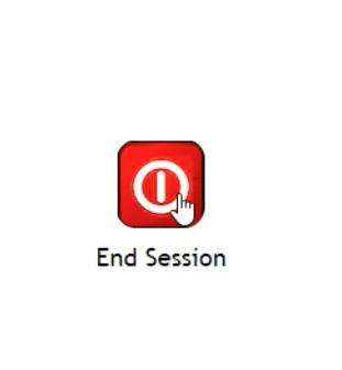 To end a session, you must minimize or close out all the open windows. This will bring you to the desktop where you should see the red "End Session" button. Click the button to end the session and clear all of your data and saved documents. This will automatically launch a new session for the next user.